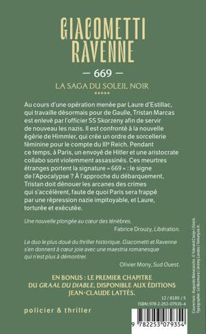 Au cours d’une opération menée par l’agente française Laure d’Estillac, qui travaille désormais pour De Gaulle, Tristan Marcas est enlevé par l’officier SS Skorzeny pour servir une nouvelle fois les nazis. Il est confronté à la nouvelle égérie d’Himmler, une universitaire qui crée un ordre de sorcellerie féminine pour le compte du IIIe Reich. Pendant ce temps, à Paris, un envoyé d’Hitler et une aristocrate collabo sont violemment assassinés. Ces meurtres étranges portent la signature 669. Le signe de l’Apocalypse ? À l’approche du débarquement, alors que Gestapo et police française ne cessent de s’affronter, Tristan doit dénouer les arcanes des crimes qui s’accélèrent : faute de quoi Paris sera frappé par une répression nazie impitoyable et Laure, torturée et exécutée.