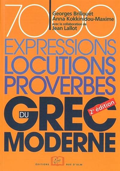 Cet ouvrage recense environ 7 000 expressions, locutions et proverbes utilisés en grec moderne dans le langage parlé et que les dictionnaires courants – qu’ils soient unilingues ou bilingues – ne contiennent souvent pas.