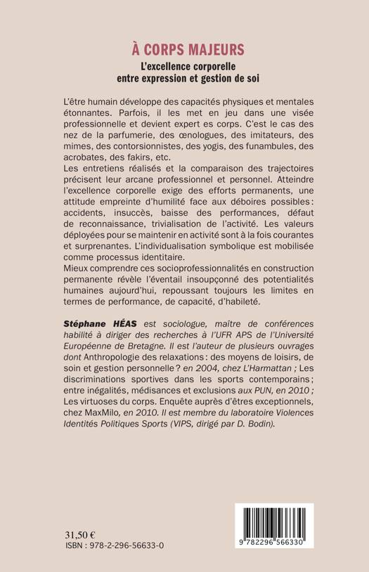 L'être humain développe des capacités physiques et mentales étonnantes. Parfois, il les met en jeu dans une visée professionnelle et devient expert es corps. C'est le cas des nez de la parfumerie, des oenologues, des imitateurs, des mimes, des fakirs, etc. Mieux comprendre ces socioprofessionnalités en construction permanente révèle l'éventail insoupçonné des potentialités humaines aujourd'hui, repoussant toujours les limites en termes de performance, de capacité, d'habileté.