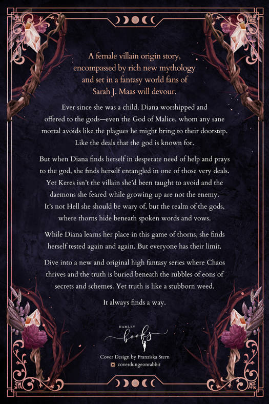 Ever since she was a child, Diana worshipped and offered to the gods—even the God of Malice, whom any sane mortal avoids like the plagues he might bring to their doorstep. Like the deals that the god is known for.