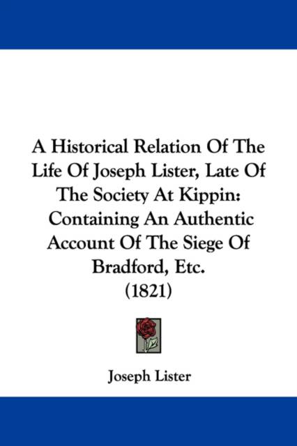 A Historical Relation Of The Life Of Joseph Lister, Late Of The Society At Kippin is a book written by Joseph Lister and published in 1821. It provides an authentic account of the life of Joseph Lister, who was a member of the Society at Kippin. The book also contains a detailed description of the Siege of Bradford, which took place during the English Civil War. The author provides a firsthand account of the events that occurred during the siege, including the tactics used by both sides and the impact it had on the local community. The book is a valuable resource for historians and anyone interested in learning about the life of Joseph Lister and the Siege of Bradford.This scarce antiquarian book is a facsimile reprint of the old original and may contain some imperfections such as library marks and notations. Because we believe this work is culturally important, we have made it available as part of our commitment for protecting, preserving, and promoting the world's literature in affordable, high quality, modern editions, that are true to their original work.