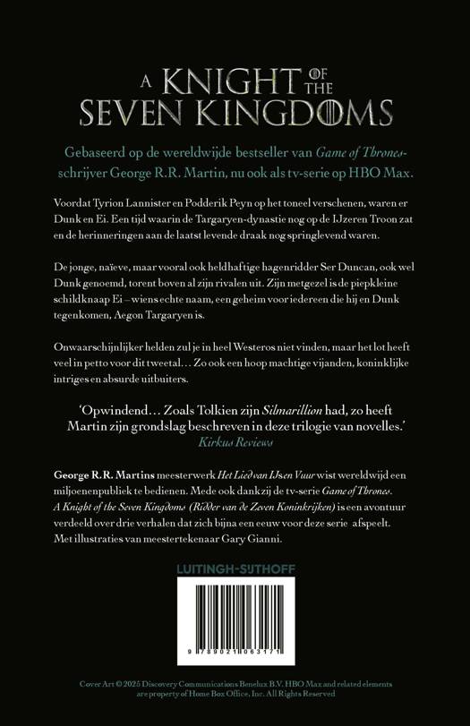 In Ridder van de Zeven Koninkrijken – is te zien als A Knight of the Seven Kingdoms op HBO – zijn de eerste drie officiële novelles samengevoegd die voorafgaan aan George R.R. Martins meesterwerk Het Lied van IJs en Vuur, dat eerder meesterlijk werd verfilmd als Game of Thrones.
