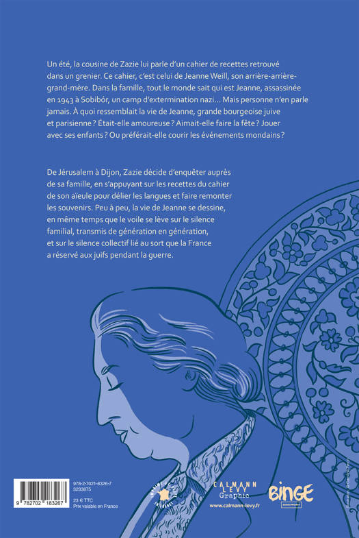 Un été, la cousine de Zazie lui parle d’un cahier de recettes retrouvé dans un grenier. Ce cahier, c’est celui de Jeanne Weill, son arrière-arrière-grand-mère. Dans la famille, tout le monde sait qui est Jeanne, assassinée en 1943 à Sobibor, un camp d’extermination nazi… Mais personne n’en parle jamais. À quoi ressemblait-elle, la vie de Jeanne, grande bourgeoise juive et parisienne ? Était-elle amoureuse ? Aimait-elle faire la fête ? Jouer avec ses enfants ? Ou préférait-elle courir les événements mondains ?