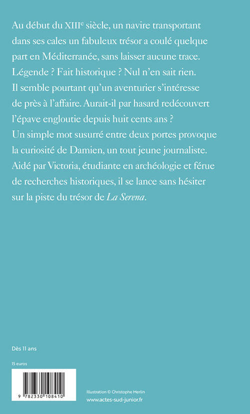 Damien surprend le mot "Serena" lors d'un très mystérieux rendez-vous organisé au journal - un hebdomadaire de reportages à sensation - où il effectue un stage. Ses antennes de futur journaliste d'investigation se mettent en mouvement. Aidé par Victoria, sa jumelle férue de recherches historiques, il apprend l'histoire d'un navire des croisades - La Serena - coulé au début du XIIIe siècle dans les eaux grecques et qui aurait transporté un butin précieux volé à Constantinople. Il soupçonne un ancien militaire aventurier d'avoir mis au jour le fameux trésor. Pour en avoir le coeur net, frère et soeur suivent sa piste et mettent le cap sur la Grèce. Légende ? Fausse rumeur ou vrai scoop?