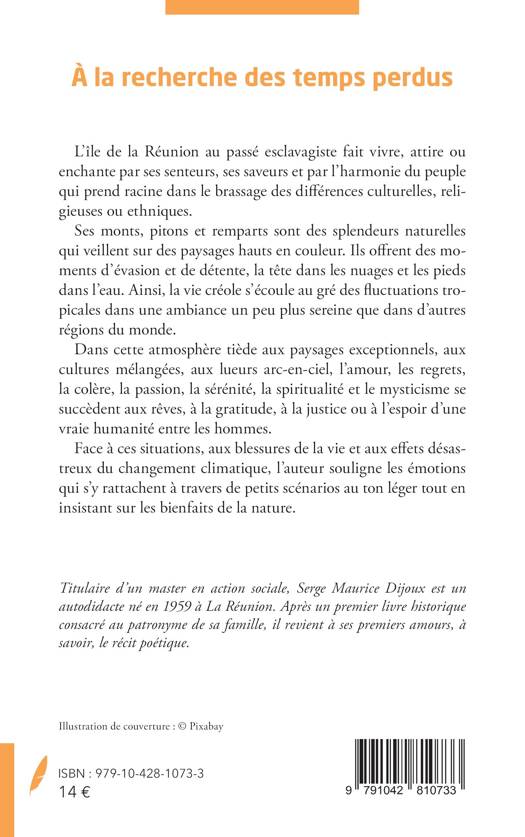 L'île de la Réunion au passé esclavagiste fait vivre, attire ou enchante par ses senteurs, ses saveurs et par l'harmonie du peuple qui prend racine dans le brassage des différences culturelles, religieuses ou ethniques. Ses monts, pitons et remparts sont des splendeurs naturelles qui veillent sur des paysages hauts en couleur. Ils offrent des moments d'évasion et de détente, la tête dans les nuages et les pieds dans l'eau. Ainsi, la vie créole s'écoule au gré des fluctuations tropicales dans une ambiance un peu plus sereine que dans d'autres régions du monde. Dans cette atmosphère tiède aux paysages exceptionnels, aux cultures mélangées, aux lueurs arc-en-ciel, l'amour, les regrets, la colère, la passion, la sérénité, la spiritualité et le mysticisme se succèdent aux rêves, à la gratitude, à la justice ou à l'espoir d'une vraie humanité entre les hommes. Face à ces situations, aux blessures de la vie et aux effets désastreux du changement climatique, l'auteur souligne les émotions qui s'y rattachent à travers de petits scénarios au ton léger tout en insistant sur les bienfaits de la nature.
