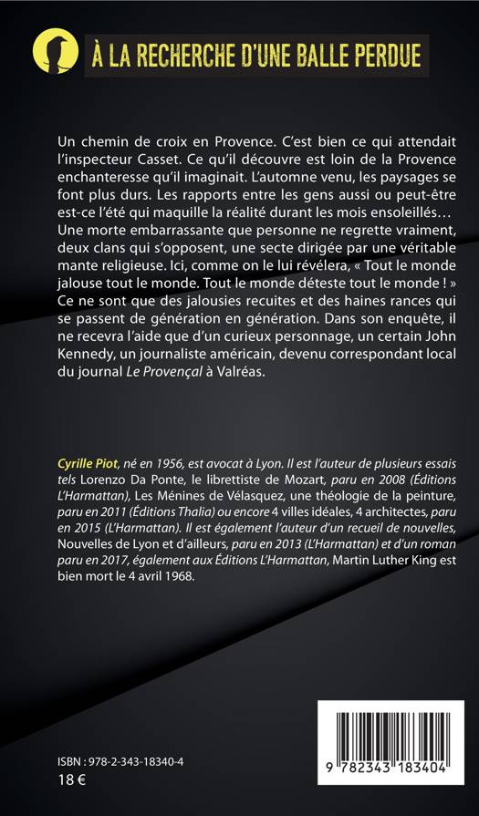Un chemin de croix en Provence. C'est bien ce qui attendait l'inspecteur Casset. Ce qu'il découvre est loin de la Provence enchanteresse qu'il imaginait. L'automne venu, les paysages se font plus durs. Les rapports entre les gens aussi ou peut-être est-ce l'été qui maquille la réalité durant les mois ensoleillés Une morte embarrassante que personne ne regrette vraiment et deux clans qui s'opposent. Dans son enquête il recevra l'aide d'un curieux personnage, un certain John Kennedy, un journaliste américain, devenu correspondant du journal local.