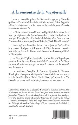 La mort n'est-elle qu'une fatalité aussi tragique qu'absurde, qui hante l'humanité depuis la nuit des temps ? Saint Augustin affirmait résolument: La mort est la maladie mortelle qu'on contracte en naissant ! Le Christianisme a révélé une intelligibilité de la vie et de la mort prodigieuse: la Bonne Nouvelle, traduction littérale du mot grec Évangile. Face à la fatalité de la Mort, c'est l'assurance de l'immortalité promise par Jésus Christ, le Fils de Dieu Ressuscité. Les évangélistes Matthieu, Marc, Luc et Jean et l'apôtre Paul proclament: le règne ou le Royaume de Dieu, la résurrection des morts, la vie éternelle, l'immortalité ou encore l'incorruptibilité, la divinisation... Les Pères de l'Église, Irénée de Lyon et Pierre Chrysologue attestent leur foi dans l'immortalité de l'humanité Le Christ est mort, de telle sorte que par sa mort Il ressusciterait les morts de tous les temps. Les mystiques, Séraphin de Sarov et Syméon le Nouveau Théologien témoignent de façon irrécusable de leurs rencontres avec la Lumière, Jésus Christ Fils de Dieu, prémisses de la Vie éternelle: Au sortir de cette vie, j'en commence une autre.