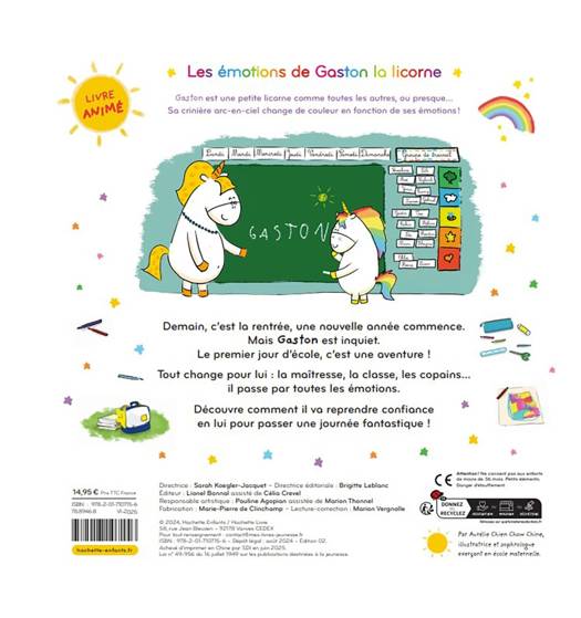 Aujourd’hui Gaston va à l’école, c’est un grand moment pour lui. Tout au long de la journée, il traverse différentes émotions. Ce livre est un vrai compagnon et l’aidera à bien vivre ses premiers jours de grand.