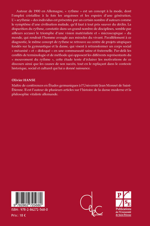 Autour de 1900 en Allemagne, le rythme est un concept à la mode, au centre de projets utopiques fondés sur la gymnastique et la danse, qui visent à transformer le corps social en une communauté saine et fraternelle. Cette étude éclaire les motivations de ce discours ainsi que les causes de son succès tout en le replaçant dans le contexte historique, social et culturel qui lui a donné naissance.