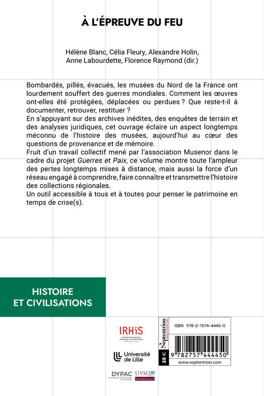 Pertes, pillages, évacuations… La Première Guerre mondiale bouleverse les musées du Nord de la France. Porté par Musenor – Association des professionnels des musées de Hauts-de-France, cet ouvrage collectif explore les traces laissées par le conflit au coeur des collections régionales. Un éclairage inédit sur l’histoire du patrimoine en temps de guerre, à la croisée des enjeux actuels de mémoire, de provenance et de restitution.