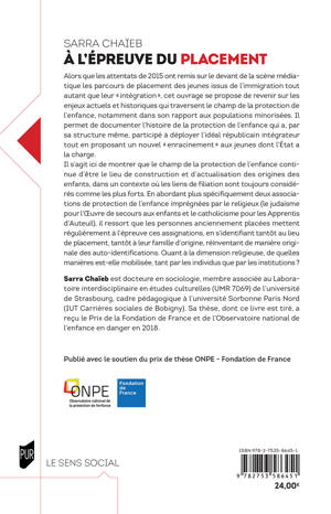 Alors que les attentats de 2015 ont remis sur le devant de la scène médiatique les parcours de placement des jeunes issus de l'immigration tout autant que leur « intégration », cet ouvrage se propose de revenir sur les enjeux actuels et historiques qui traversent le champ de la protection de l'enfance, notamment dans son rapport aux populations minorisées. Il permet de documenter l'histoire de la protection de l'enfance qui a, par sa structure même, participé à déployer l'idéal républicain intégrateur tout en proposant un nouvel « enracinement » aux jeunes dont l'État a la charge.
