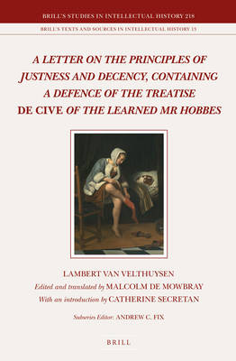 Although little known today, the Utrecht physician and town councillor Lambert van Velthuysen (1622-1685) was a prolific Dutch seventeenth-century philosopher and a vociferous advocate of the new philosophies of Descartes and Hobbes. The Letter on the Principles of Justness and Decency of 1651 constitutes both the first published reaction to Hobbes's political philosophy and the first attempt by a Dutch philosopher at using Hobbes to supply a 'Cartesian' moral philosophy. It is also a highly original work that seeks to define the nature of virtue and vice and to justify the magistrate's right to punish crimes. It will thus be of interest not only to historians of philosophy but to all those interested in the social and cultural history of the Dutch Golden Age.
