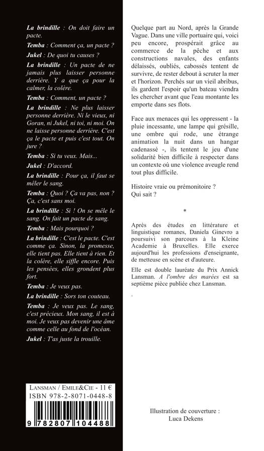Quelque part au Nord, après la Grande Vague. Dans une ville portuaire qui, voici peu encore, prospérait grâce au commerce de la pêche et aux constructions navales, des enfants délaissés, oubliés, cabossés tentent de survivre, de rester debout à scruter la mer et l'horizon. Perchés sur un vieil abribus, ils gardent l'espoir qu'un bateau viendra les chercher avant que l'eau montante les emporte dans ses flots.