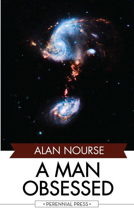 HE HUNTED HORROR THROUGH A MANIAC WORLD! Jeffrey Meyer had a killing on his mind. It meant nothing to him that his towering Twenty-first Century world was going mad. He shouldered aside the rising tide of narcotics-mania, the gambling fever, the insatiable lust for the irrational. Jeff had his own all-consuming obsession—Paul Conroe must die! After a five-year frenzied chase, Jeff had his victim cornered; he'd driven him into the last hideaway of the world's most desperate men—the sealed vaults of the human-vivisectionists. And Jeff knew that to reach his final horrible objective, he must offer himself also as a guinea pig for the secret experiments of the world's most feared physicians! Alan E. Nourse's new novel A MAN OBSESSED has the impact of Orwell's 1984 and the imaginative vigor of Huxley's Brave New World.