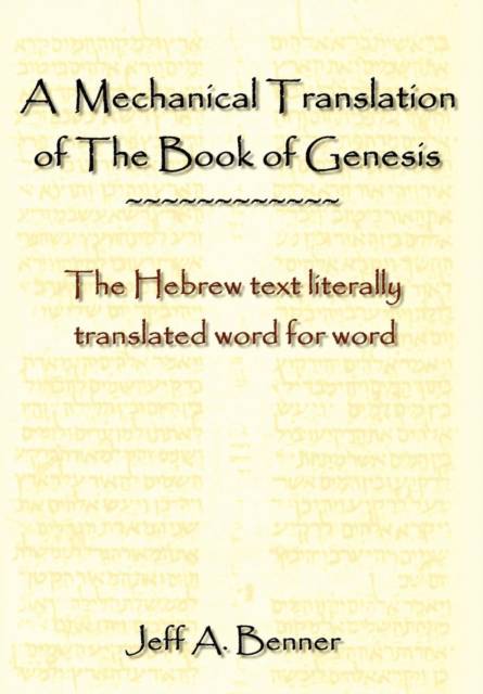 While the original Biblical text was written from an Ancient Hebraic perspective, all modern translations of the Bible are written from our modern western perspective. This traditional approach to translation does allow for ease in reading but it erases the original Hebraic style and meaning of the text. In addition, translations take many liberties by removing, changing or adding words from the text in order to "fix" the text for the English reader. The Mechanical Translation is a new and unique style of translation that will reveal the Hebrew behind the English by translating the text very literally and faithfully to the original Hebrew text. A great tool for those interested in studying the Bible who have no Hebrew background as well as for those who are learning to read the Bible in its original Hebrew language. Features: . An introduction to the Hebrew language and grammar. . The Hebrew text from the Biblia Hebraica Leningradensia. . A literal word for word translation of the Hebrew text. . A revised translation for understandability in English. . A dictionary of words defined from an Hebraic perspective. . A concordance of all words found in the book of Genesis.