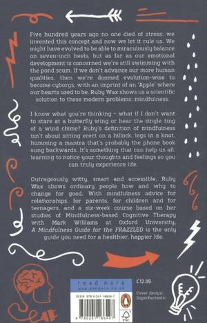 Five hundred years ago no-one died of stress: we have invented this concept and now we let it rule us. Rest has become a dirty word, and our idea of satisfaction is answering the last email. We're sleepwalking through our own lives. Ruby Wax shows us how to wake up from this stupor with a scientific solution to modern problems: mindfulness.