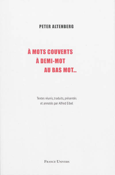 Aphorismes, réflexions satiriques, croqui sur le vif réunis, traduits, présentés et annotés par Alfred Eibel. Écrivain autrichien né et mort à Vienne (1859-1919), Peter Altenberg manquait toujours d’argent et menait une vie de bohème. Spécialisé dans les jacasseries de bistrot, il y prenait au vol des propos imprévisibles pour les noter dans son carnet.