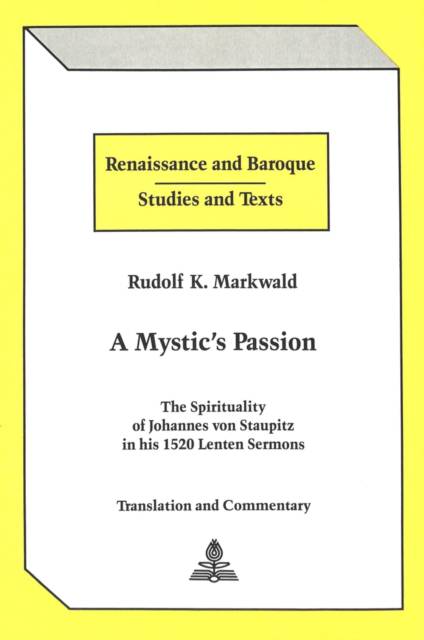 This exciting interpretation of a homiletic work of art by Johannes von Staupitz, Luther's mentor, leads the reader to an insight into his mystic sprituality. Rudolf Markwald reveals Staupitz' deep concern for the integrity of the Church and his personal apprehensions at the dawn of the Reformation. Disclosing the synthesis between Staupitz' glowing vision of the Cross and his challenge for Church renewal by the new birth of its people, A Mystic'sPassion gives a fresh perspective of the fervor of these messages and his quest for defusing tensions.