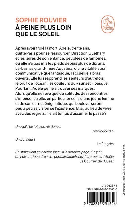 Après avoir frôlé la mort, Adèle, trente ans, quitte Paris pour se ressourcer. Direction Guéthary et les terres de son enfance, peuplées de fantômes, où elle n’a pas mis les pieds depuis plus de dix ans. Là-bas, sa grand-mère Agustina, d’une vitalité aussi communicative que fantasque, l’accueille à bras ouverts. Elle lui réapprend les senteurs d’autrefois, le bruit de l’océan, les couleurs du « sunset » basque. Pourtant, Adèle peine à trouver ses marques. Alors qu’elle ne rêve que de solitude, des rencontres s’imposent à elle, en particulier celle d’une jeune femme et de son carnet énigmatique, qui bouleverseront peu à peu sa vision de l’existence. Et si, au lieu de vivre avec des regrets, il était temps d’assumer le passé ?