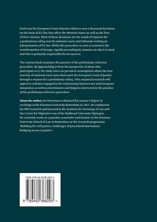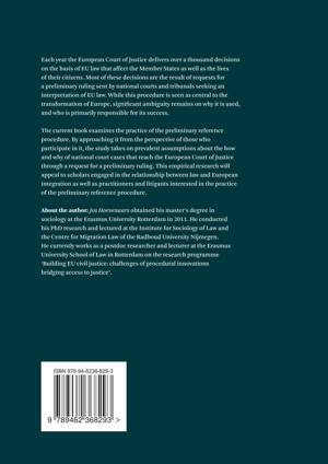 The current book examines the practice of the preliminary reference procedure. By approaching it from the perspective of those who participate in it, the study takes on prevalent assumptions about the how and why of national court cases that reach the European Court of Justice through a request for a preliminary ruling. This empirical research will appeal to scholars engaged in the relationship between law and European integration as well as practitioners and litigants interested in the practice of the preliminary reference procedure.