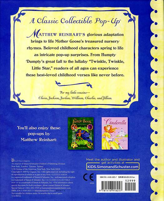 The Jungle Book brings an added dimension -- literally -- to the classic telling of Mother Goose's most treasured nursery rhymes. With six spreads of of pop ups and and mini book, this book is a phenomenal family keepsake to read for years to come.