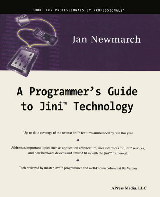 - Jan Newmarch's original on-line tutorial was read by tens of thousands. This enlarged, improved version tech-reviewed by master Java programmer and well-known columnist Bill Venner sets the standard for a best-selling JINI tutorial. - Up-to-date for the newest features of the JINI technology announced by Sun this year (2000). - Includes coverage of such important topics as how Enterprise Java Beans fit in with the JINI framework and how CORBA fits in as well.