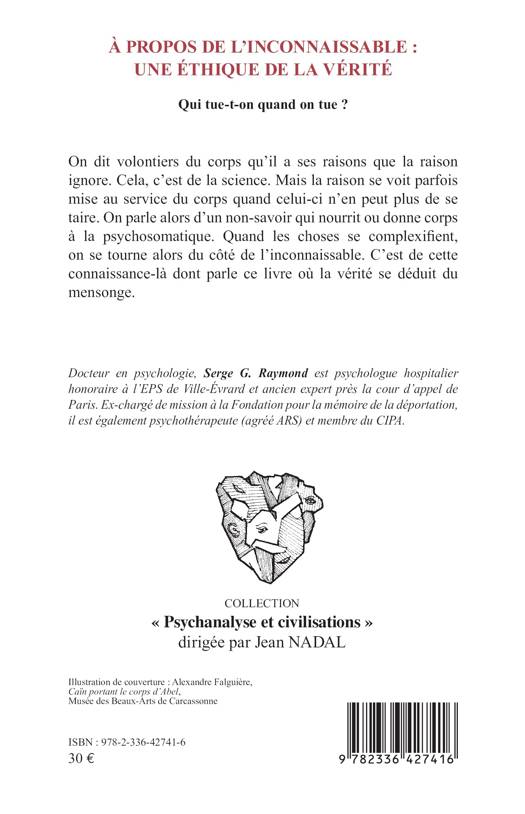On dit volontiers du corps qu’il a ses raisons que la raison ignore. Cela, c’est de la science. Mais la raison se voit parfois mise au service du corps quand celui-ci n’en peut plus de se taire. On parle alors d’un non-savoir qui nourrit ou donne corps à la psychosomatique. Quand les choses se complexifient, on se tourne alors du côté de L’inconnaissable. C’est de cette connaissance-là dont parle ce livre où la vérité se déduit du mensonge.