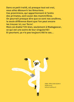 Connaissez-vous ces primates vivant uniquement sur l'île de Madagascar qui vénèrent le soleil et se nourrissent de fruits ?! Voici un petit traité d'Histoire naturelle fantaisiste et tout à la fois véridique, à la hauteur de l'imagination des enfants accompagné de pages documentaires pour compléter la lecture. Dès 6 ans.
