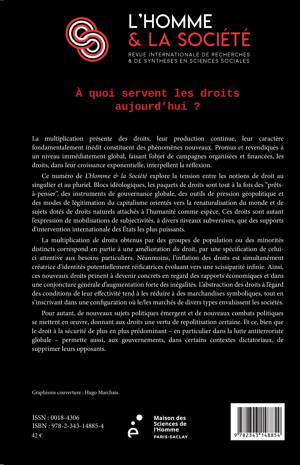La multiplication des droits, leur production continue, leur caractère inédit constituent des phénomènes nouveaux. Ce numéro explore la tension entre les notions de droit au singulier et au pluriel. Outils de gouvernance, de pression géopolitique ou de légitimation du capitalisme, ils sont aussi l'expression de mobilisations subversives des subjectivités. La multiplication de droits obtenus par des groupes ou minorités améliore le droit, en le spécifiant eu égard à des besoins particuliers. Mais face à l'inflation de droits créatrice d'identités réificatrices, les nouveaux droits peinent à devenir concrets. Mais si le droit à la sécurité facilite l'autoritarisme, une repolitisation est possible.
