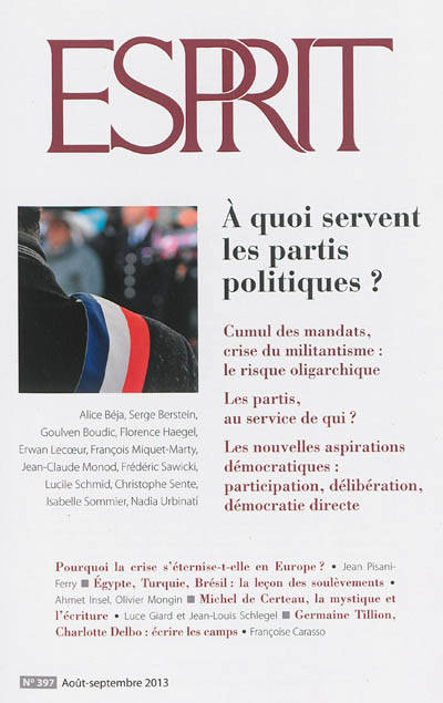 Réflexions sur la crise dans les partis politiques en France (désaffection, abstention, batailles internes, absence de direction, etc.) et ses effets possibles sur une remise en cause de la "démocratie des partis" ou la probabilité d'un décrochage électoral. Des contributions examinent également les revendications politiques émergentes : participations, délibération, démocratie directe.