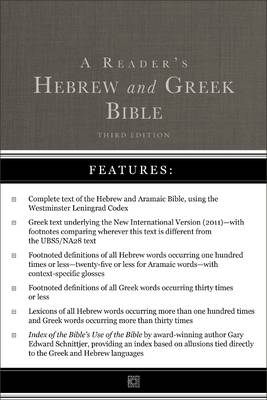 A Reader's Hebrew and Greek Bible: Third Edition is a classic and essential tool for students of biblical Hebrew and Greek. The Reader presents the Hebrew and Aramaic text of the Westminster Leningrad Codex (minus the critical apparatus) and the Greek text underlying the New International Version alongside the English translation.