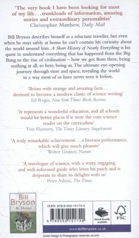 Bill Bryson describes himself as a reluctant traveller: but even when he stays safely in his own study at home, he can't contain his curiosity about the world around him. It's not so much about what we know, as about how we know what we know.