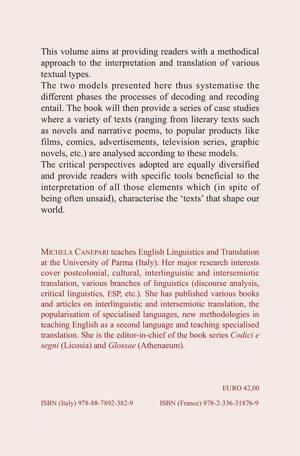 This volume aims at providing readers with a methodical approach to the interpretation and translation of various textual types.