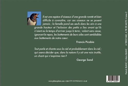 Les oiseaux de nos jardins, en toutes saisons, et souvent en mouvement, 63 espèces, 135 photographies, 124 pages. Prise de vues principalement sous affût, gros plans de passereaux et de rapaces par un photographe de plus de 30 ans de métier. Nourrissage des juvéniles, prises de becs en plein vol, joutes des mâles sur les étangs, rapaces en vol avec des textes poétiques de plusieurs auteurs.