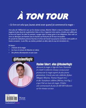 Avec plus de 1 Milliard de vues sur les réseaux sociaux, Maxime Tabart a réussi à s’imposer comme le magicien le plus doué de sa génération. Dans ce livre, il t'apprend, entre autres, à tordre une cuillère par la force de l’esprit, lire dans les pensées, voyager dans le temps grâce à ton téléphone, faire voler un verre ou découper une banane sans la toucher au fil de près de 50 tours incroyables.