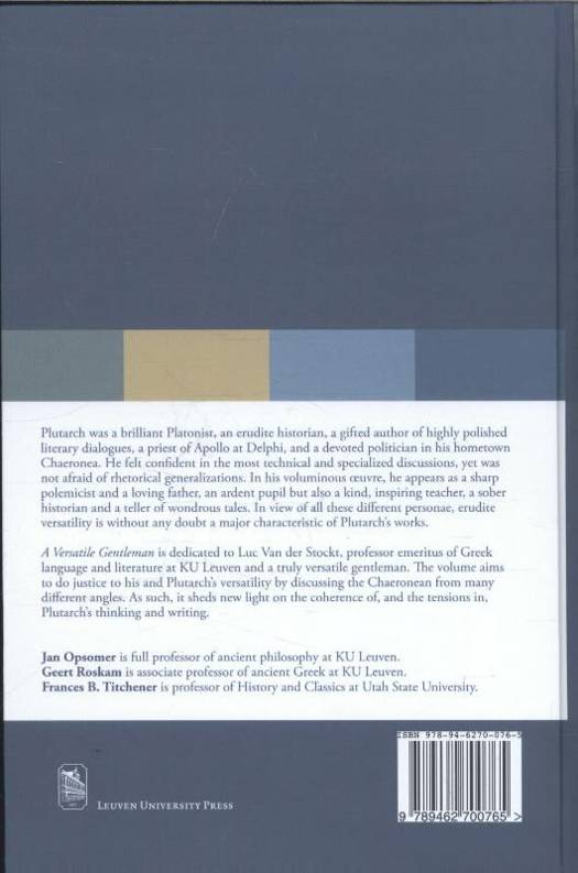 Plutarch was a brilliant Platonist, an erudite historian, a gifted author of highly polished literary dialogues, a priest of Apollo at Delphi, and a devoted politician in his hometown Chaeronea. He felt confident in the most technical and specialized discussions, yet was not afraid of rhetorical generalizations. In his voluminous oeuvre, he appears as a sharp polemicist and a loving father, an ardent pupil but also a kind, inspiring teacher, a sober historian and a teller of wondrous tales. In view of all these different personae, erudite versatility is without any doubt a major characteristic of Plutarch's works. A Versatile Gentleman is dedicated to Luc Van der Stockt, professor emeritus of Greek language and literature at KU Leuven and a truly versatile gentleman. The volume aims to do justice to his and Plutarch's versatility by discussing the Chaeronean from many different angles. As such, it sheds new light on the coherence of, and the tensions in, Plutarch's thinking and writing.