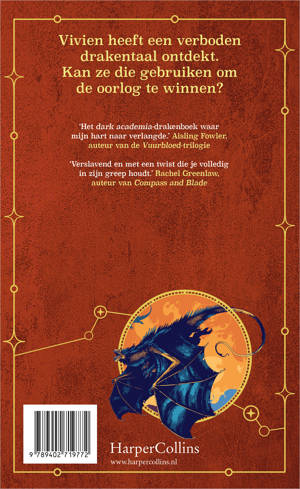 A War of Wyverns is het meeslepende vervolg op het razend populaire A Language of Dragons van S.F. Williamson. Een verhaal vol plottwists, liefde, verraad en geheimen! Vivien Featherswallow heeft een geheime drakentaal ontcijferd en daarmee onbedoeld een burgeroorlog ontketend, waarin mensen en draken lijnrecht tegenover elkaar staan. Nadat ze premier Wyvernmire heeft verslagen en uit Bletchley Park is ontsnapt, is ze het gezicht van de opstand geworden… en de meest gezochte crimineel van het land. Maar wat kan ze nog betekenen voor het verzet als ze moet onderduiken? Op zoek naar antwoorden reist Viv naar de afgelegen Schotse eilanden om een mysterieuze, lang vergeten drakensoort te vinden. Zijn deze draken de sleutel tot het definitieve einde van de oorlog of verwoesten ze alles wat haar nog dierbaar is? Over A Language of Dragons: 'Dit was echt een geweldig boek! Het doet denken aan Babel, maar dan Young Adult en met draken.' Boekhandel Het Colofon 'Het dark academia-drakenboek waar mijn hart naar verlangde. Een must-read voor fantasyfans overal ter wereld.' Aisling Fowler, auteur van de Vuurbloed-trilogie 'Verslavend en met een twist die je volledig in zijn greep houdt.' Rachel Greenlaw, auteur van Compass and Blade
