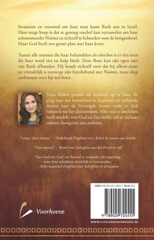 De Bijbels-historische roman 'Aan zijn voeten' van Tessa Afshar vertelt het ongewone liefdesverhaal van Ruth en Boaz, dat het voortbestaan van het volk van Israël verzekerde. Straatarm en rouwend om haar man komt de Moabitische Ruth aan in Israël. Haar enige hoop is dat ze genoeg voedsel kan verzamelen om haar schoonmoeder Naomi en zichzelf te behoeden voor de hongerdood. Maar God heeft een groter plan met haar leven. Tussen alle mensen die haar behandelen als uitschot is er één man die haar nood ziet en hulp biedt. Deze Boaz kan zijn ogen niet van Ruth afhouden. Hij houdt zichzelf voor dat hij alleen maar zo vriendelijk is vanwege zijn familieband met Naomi, maar diep vanbinnen weet hij wel beter…