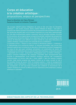 Cet ouvrage collectif explore l’intégration du corps et des sens dans les disciplines artistiques — arts visuels, musique, danse, création littéraire et design — tant dans le processus de création que dans l’acquisition de connaissances et de compétences. Bien que des recherches récentes aient mis en lumière l’importance du corps dans l’apprentissage, son rôle reste insuffisamment exploré, notamment dans le domaine artistique. Structuré en trois sections, cet ouvrage propose une approche plurielle, mobilisant des perspectives théoriques de la recherche-création, de la didactique, des arts, de la psychologie et des sciences de l’éducation, pour réfléchir à la place centrale du corps dans l’éducation à la création artistique. Chaque section est composée de trois contributions.La première section, « Penser le corps à travers la Recherche-création », s’intéresse à la méthodologie de la recherche-création, un domaine prometteur mais encore trop rarement exploré dans la recherche en éducation. Elle examine comment l’engagement du corps et des sens peut contribuer activement à la construction de savoirs, de compétences et d’attitudes dans le cadre de l’éducation artistique. La deuxième section, « Apprendre par le corps : propositions pédagogiques pour la création artistique », analyse comment l’intégration des pratiques corporelles dans l’enseignement peut favoriser le développement d’une intention artistique, renforcer des compétences professionnelles, ou encore créer des « corps créatifs » dans les espaces scolaires normés. Cette section propose des ateliers centrés sur le corps, ouvrant la voie à de nouvelles formes de savoirs. Enfin, la troisième section, « Corps et enseignement artistique : enjeux didactiques », interroge le rôle du corps et des sens dans la formation des enseignants, en tant que levier essentiel pour améliorer la transmission de la création artistique et enrichir la réflexion sur les interactions entre didactique, pratique artistique et corporéité.