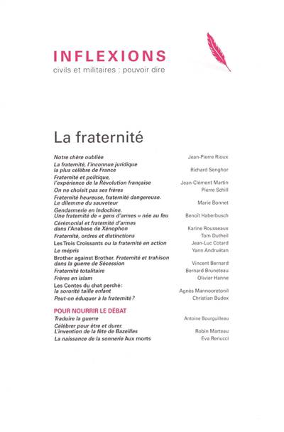 La fraternité est le parent pauvre de la devise républicaine, l’oubliée. Ce thème est rarement débattu ; il est peu inscrit dans les travaux des sciences humaines et sociales, et pas davantage dans le débat public alors que notre société semble de plus en plus cloisonnée et soumise à des coups de boutoir communautaires et identitaires. Un besoin, un souci de fraternité revient cependant depuis quelques temps. Avec ce numéro, Inflexions entend participer à une réflexion qui se développe aujourd’hui dans des cercles de plus en plus nombreux. Alors, ne « restons pas au balcon ! »