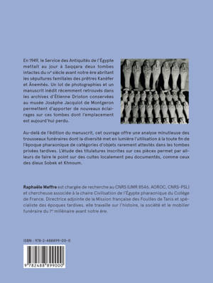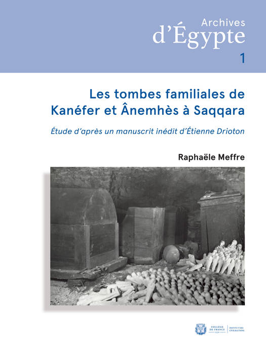 Édition d’un manuscrit inédit d’Étienne Drioton, ancien professeur au Collège de France, relatif à la découverte des tombes familiales intactes de Kanéfer et Ânemhès, prêtres memphites du IVe siècle avant notre ère. Accompagnée d’une analyse complète du matériel funéraire mis au jour et des rituels associés, cette étude offre un nouveau regard sur l’histoire religieuse et les pratiques funéraires des époques tardives.