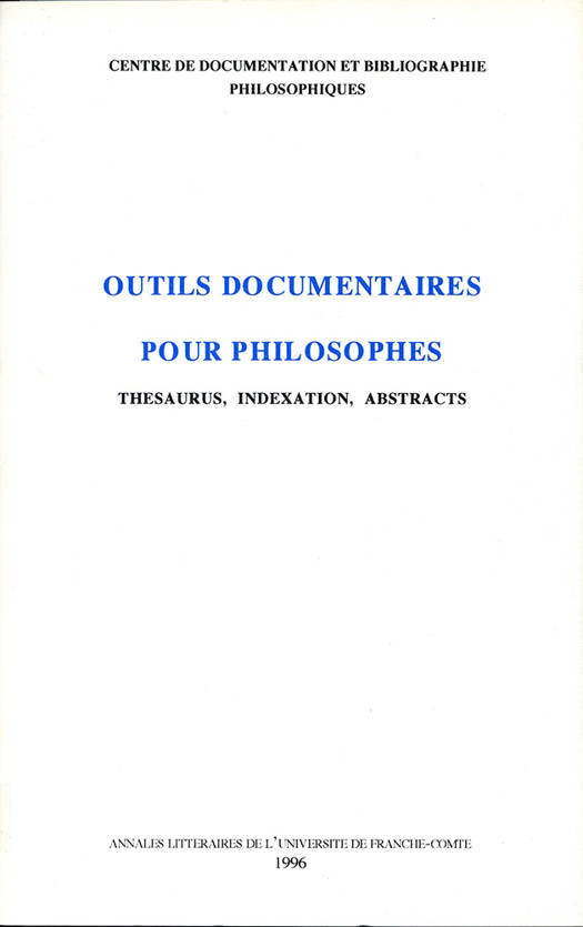 S'ils ne veulent rester indéfiniment à la remorque des autres, les philosophes se doivent d'étudier l'adaptation à leurs disciplines des procédures modernes du traitement documentaire. Ce recueil d'études et de documents illustre quelques-unes de ces approches, sans dissimuler les difficultés qu'elles rencontrent et les interrogations qu'elles soulèvent. Ces études sont nées des Journées organisées à Besançon par le CENTRE DE DOCUMENTATION ET BIBLIOGRAPHIE PHILOSOPHIQUES. Initié naguère par Gaston Berger, ce Centre unique en son genre dans ce domaine est le lieu naturel pour les échanges de vues sur le sujet. On souhaite que ce volume contribue à attirer l'attention des professionnels de la philosophie sur un problème qui les concerne tous, et qu'il soit le premier d'une série à développer avec leur concours. On accueillera volontiers suggestions et contributions.