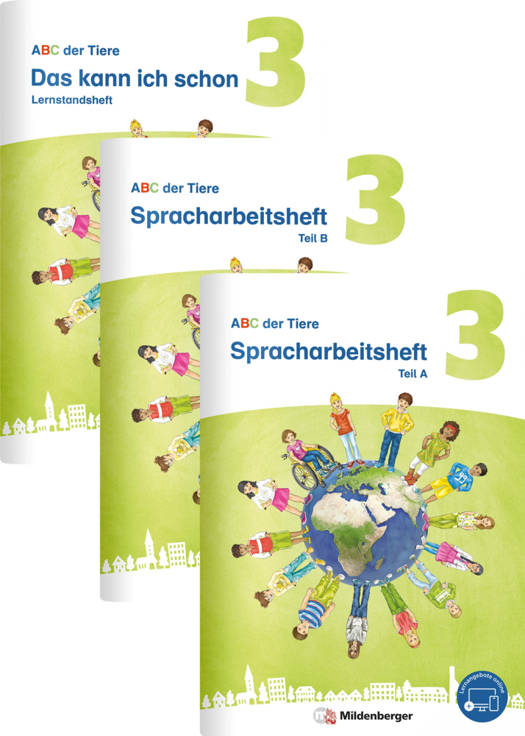 Auch in Klasse 3 können Kinder mit dem bewährten Spracharbeitsheft arbeiten. Das erfolgreiche Konzept wurde in der ABC der Tiere-Neubearbeitung zum ersten Mal auch für die Jahrgangsstufe 3 umgesetzt. Es ist das ideale Lernwerkzeug. Hier erarbeiten die Lernenden die Inhalte besonders effizient in einem Medium - ohne Umweg über ein zusätzliches Buch oder Heft. Vielfältige Aufgabenformate, Sozialformen und differenzierte Angebote ermöglichen dabei jedem Kind einen individuellen Lernweg. Aufgaben zu aktuellen Themen wie Medienkompetenz, Hörstrategien und Bildung für nachhaltige Entwicklung bilden im Spracharbeitsheft eine weitere durchgehende Ebene.