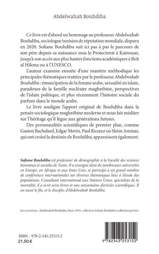 Ce livre est d’abord un hommage au professeur Abdelwahab Bouhdiba, sociologue tunisien de réputation mondiale, disparu en 2020. Sofiane Bouhdiba suit ici pas à pas le parcours de son père depuis sa naissance sous le Protectorat à Kairouan, jusqu’à son accès aux plus hautes fonctions académiques à Beit al Hikma ou à l’UNESCO. Le livre souligne l’apport original de Bouhdiba dans la pensée sociologique maghrébine moderne et nous fait méditer sur l’héritage qu’il lègue aux générations futures.