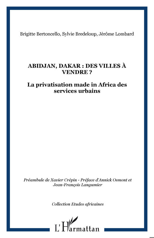Menée à Abidjan et à Dakar, cette étude décrit les formes de privatisation made in Africa des services urbains. L'Etat et les collectivités locales bradent le transport ou le commerce par lots, les gares routières après les marchés, les routes et les trottoirs après les pas de porte. La différenciation socioéconomique de l'espace urbain s'accentue et profite principalement aux affairistes et aux politiciens.