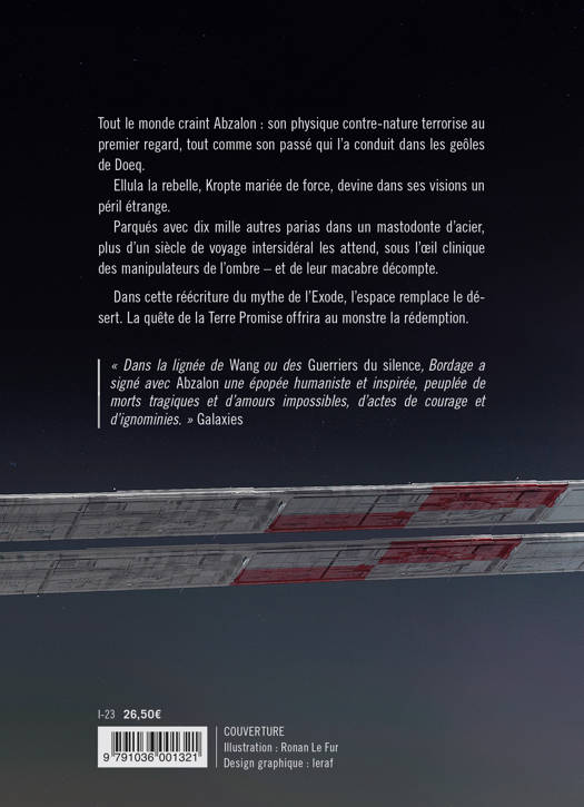Parqués avec dix mille autres parias dans un mastodonte d'acier, plus d'un siècle de voyage intersidéral les attend, sous l'oeil clinique des manipulateurs de l'ombre - et de leur macabre décompte.