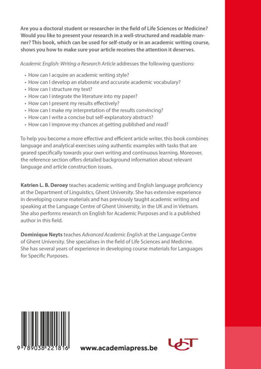 Are you a doctoral student or researcher in the field of Life Sciences or Medicine? Would you like to present your research in a well-structured and readable manner? This book, which can be used for self-study or in an academic writing course, shows you how to make sure your article receives the attention it deserves.