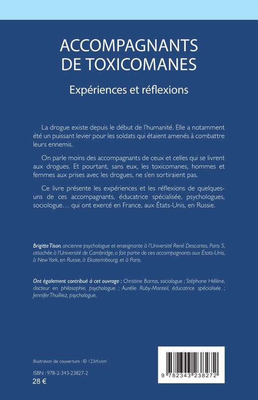 La drogue existe depuis le début de l’humanité. Elle a notamment été un puissant levier pour les soldats qui étaient amenés à combattre leurs ennemis. On parle moins des accompagnants de ceux et celles qui se livrent aux drogues. Et pourtant, sans eux, les toxicomanes, hommes et femmes aux prises avec les drogues, ne s’en sortiraient pas. Ce livre présente les expériences et les réflexions de quelques-uns de ces accompagnants, éducatrice spécialisée, psychologues, sociologue... qui ont exercé en France, aux États-Unis, en Russie.