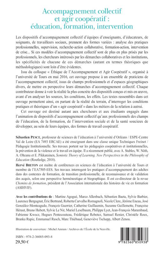 Issu du colloque « Éthique de l'Accompagnement et Agir Coopératif », organisé à l'université de Tours en mai 2016, cet ouvrage propose à un ensemble de praticiens de l'accompagnement collectif, issus de champs professionnels et d'espaces géographiques divers, de mettre en perspective leurs démarches d'accompagnement collectif. Chaque contributeur donne à voir la réalité la plus concrète des dispositifs conçus et mis en oeuvre, avant d'en analyser les sources, les conditions et les effets. Les textes rassemblés dans cet ouvrage permettent ainsi, en partant de la réalité du terrain, d'interroger les conditions pratiques et théoriques d'un « agir coopératif » dans les métiers de la relation à autrui.