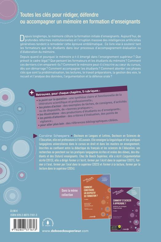 Depuis longtemps, le mémoire clôture la formation initiale d’enseignants. Aujourd’hui, de profondes réformes institutionnelles et l’irruption massive des intelligences artificielles génératives tendent à remodeler cette épreuve emblématique. Ce livre vise à soutenir tant les formateurs que les étudiants dans leur processus d’accompagnement-évaluation ou d’élaboration du mémoire.